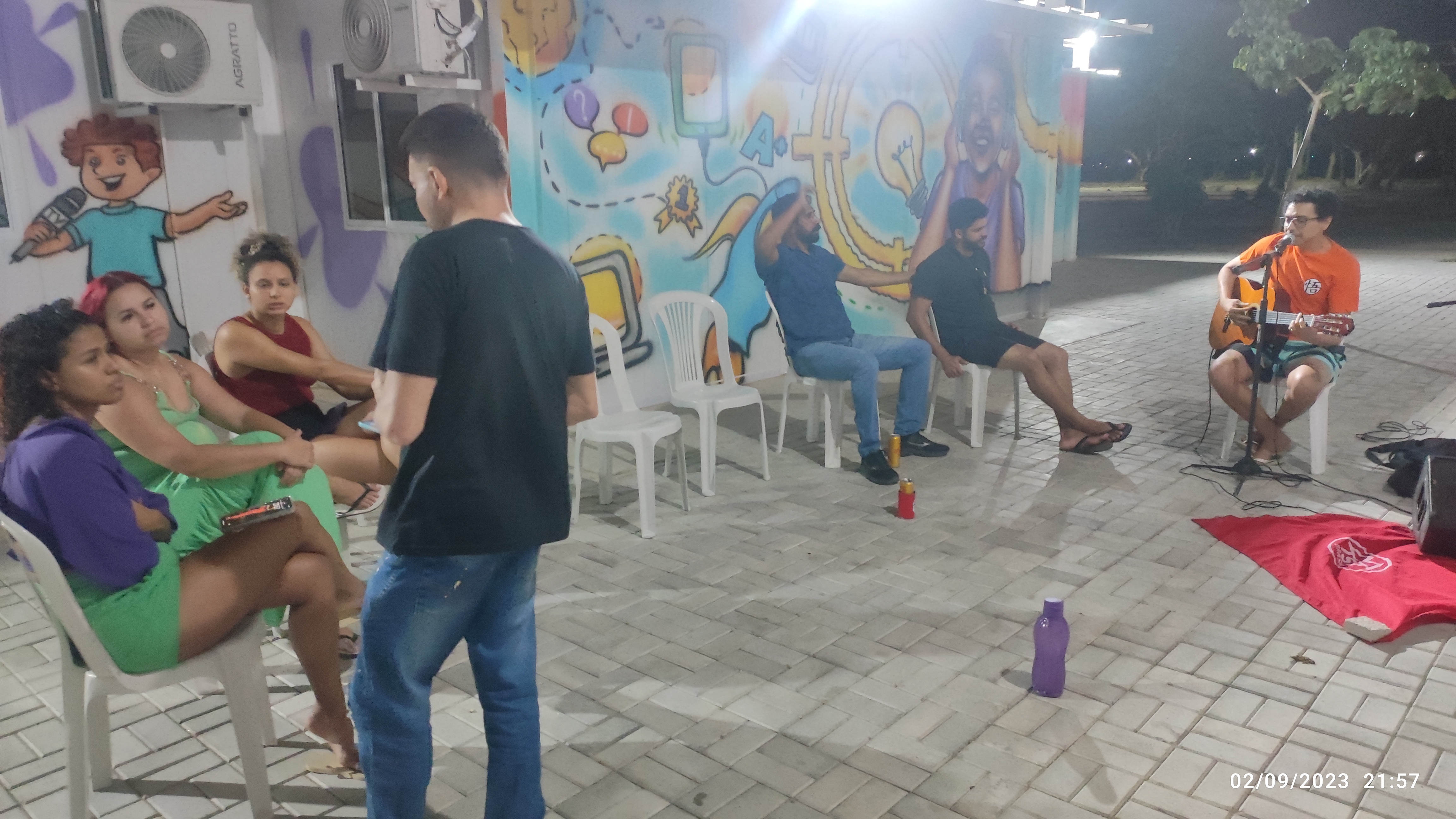 Em 2005, fundamos o Coletivo das Artes, um marco na minha vida e na comunidade. Desse coletivo, nasceu o Sarau do Parque Água Fria, realizado na praça do Conjunto Alvorada, que já conta com mais de 300 edições. O sarau reúne intervenções poéticas, musicais, exposições e feiras, tornando-se um espaço vital para a expressão artística e a luta por direitos culturais na periferia.