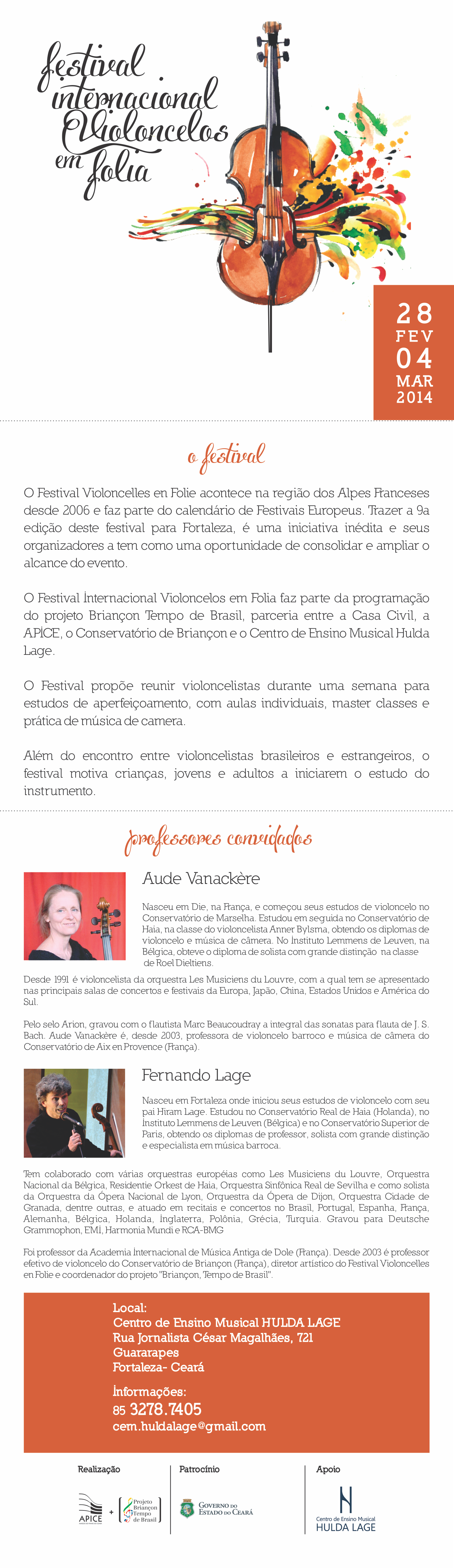 Contribuiu com diversos projetos sociais e ações em prol do desenvolvimento da música no Estado do Ceará como o Projeto Briançon Tempo de Brasil (2006 a 2016) e Festival Internacional Violoncelos em Folia (2014 a 2018).