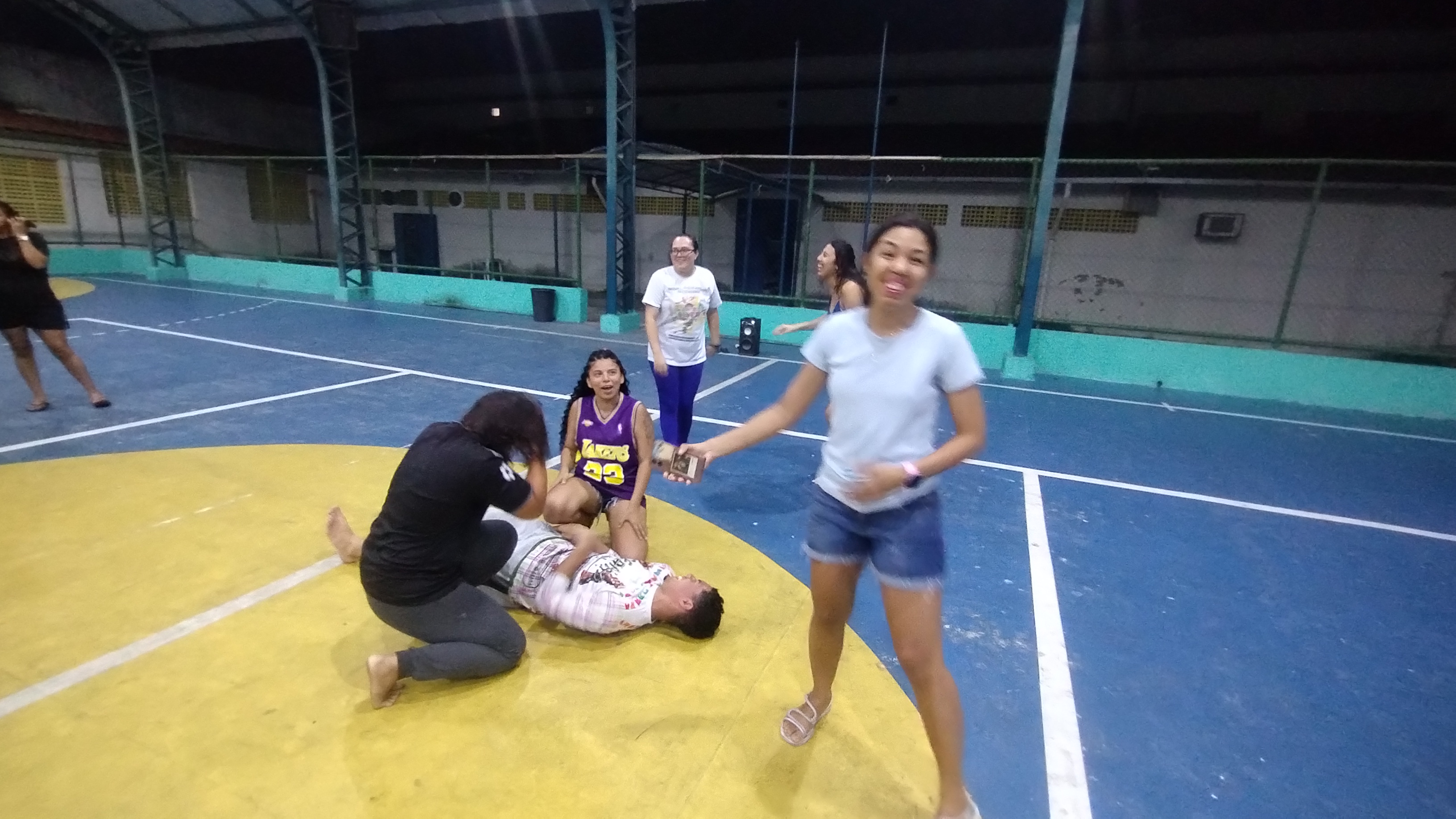 Judas na roda jogando com a organizadora do projeto