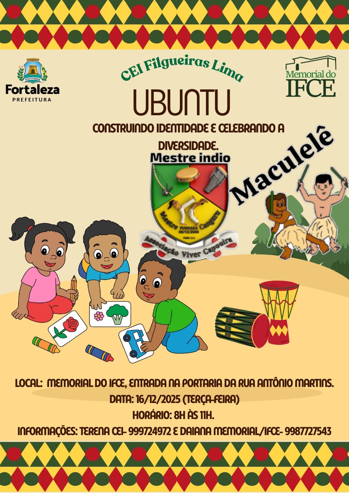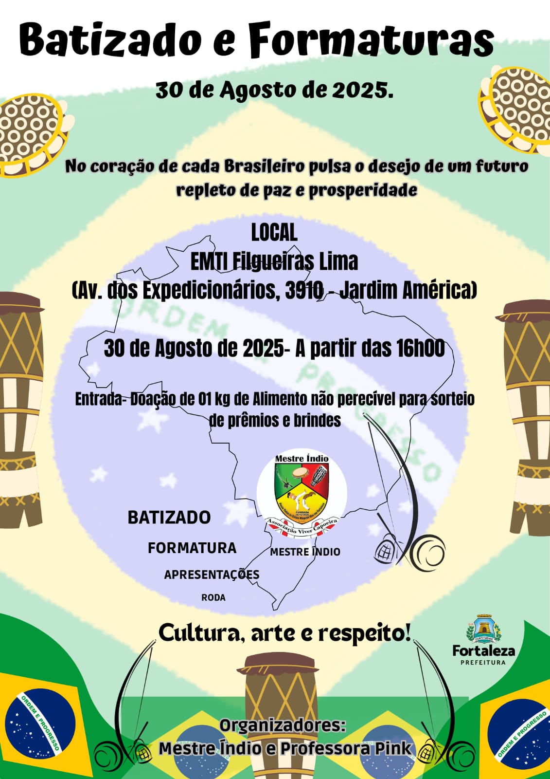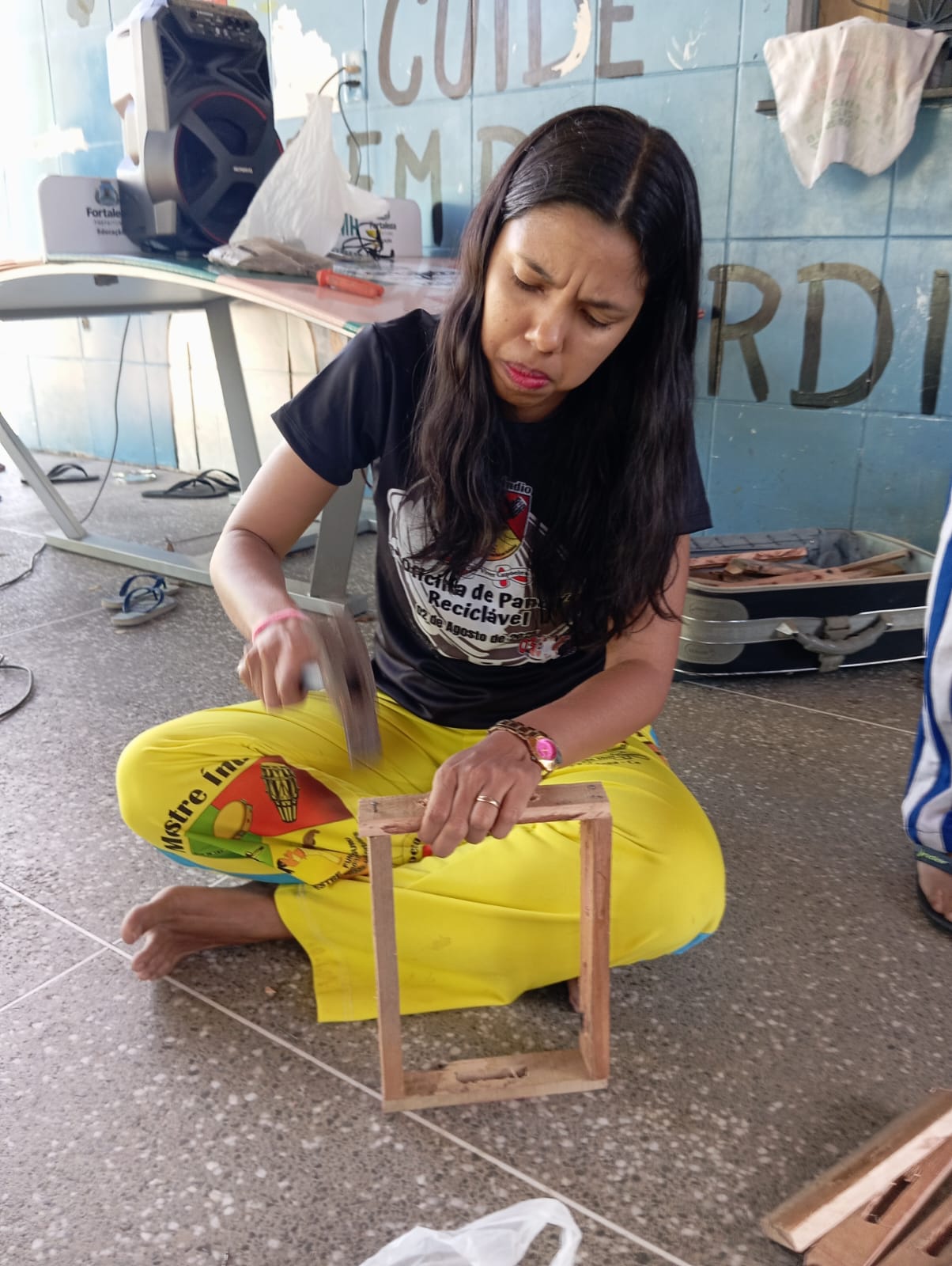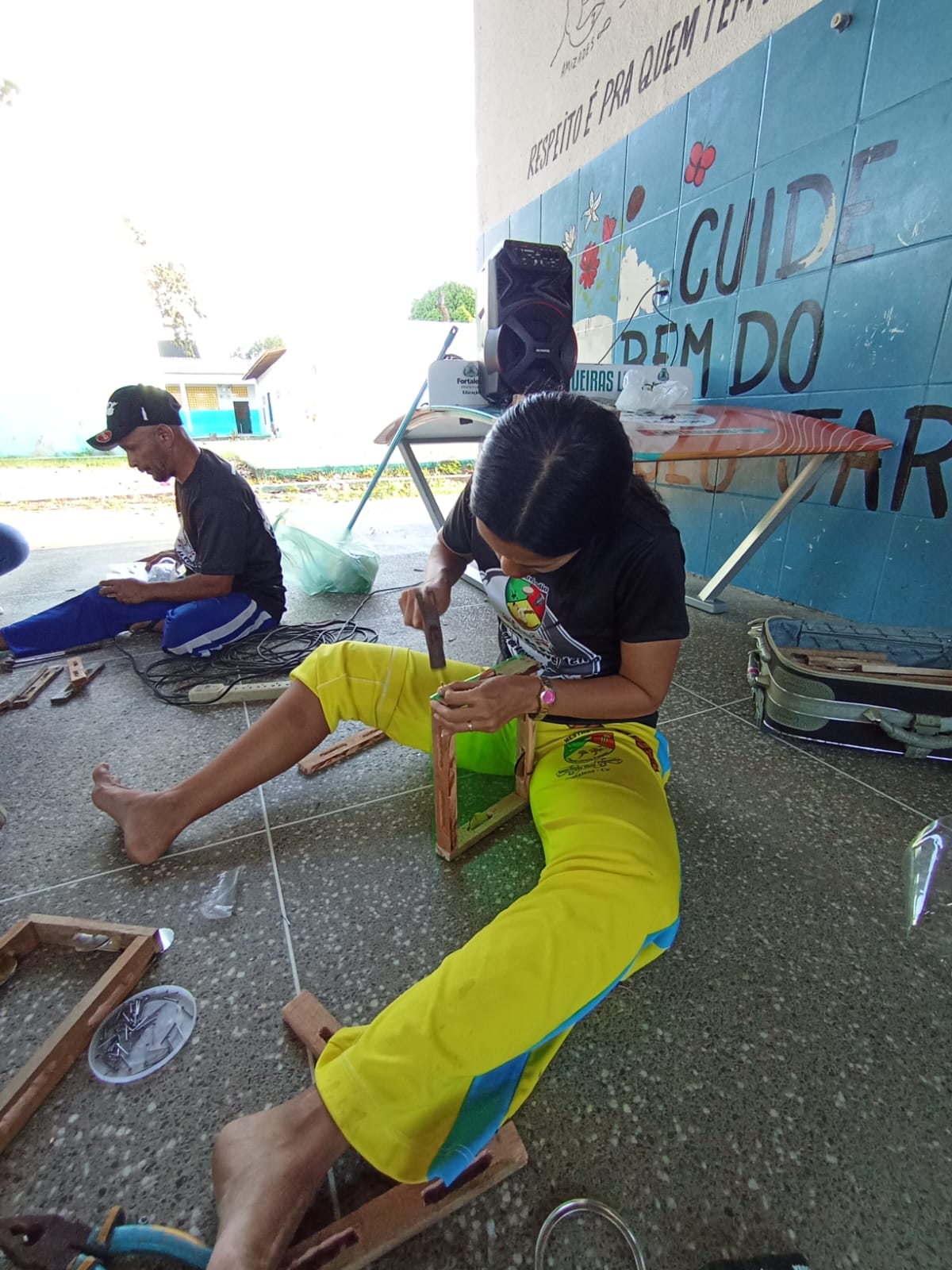 Oficina de pandeiro reciclável organização professora Halana pink e Mestre índio Fortaleza ce