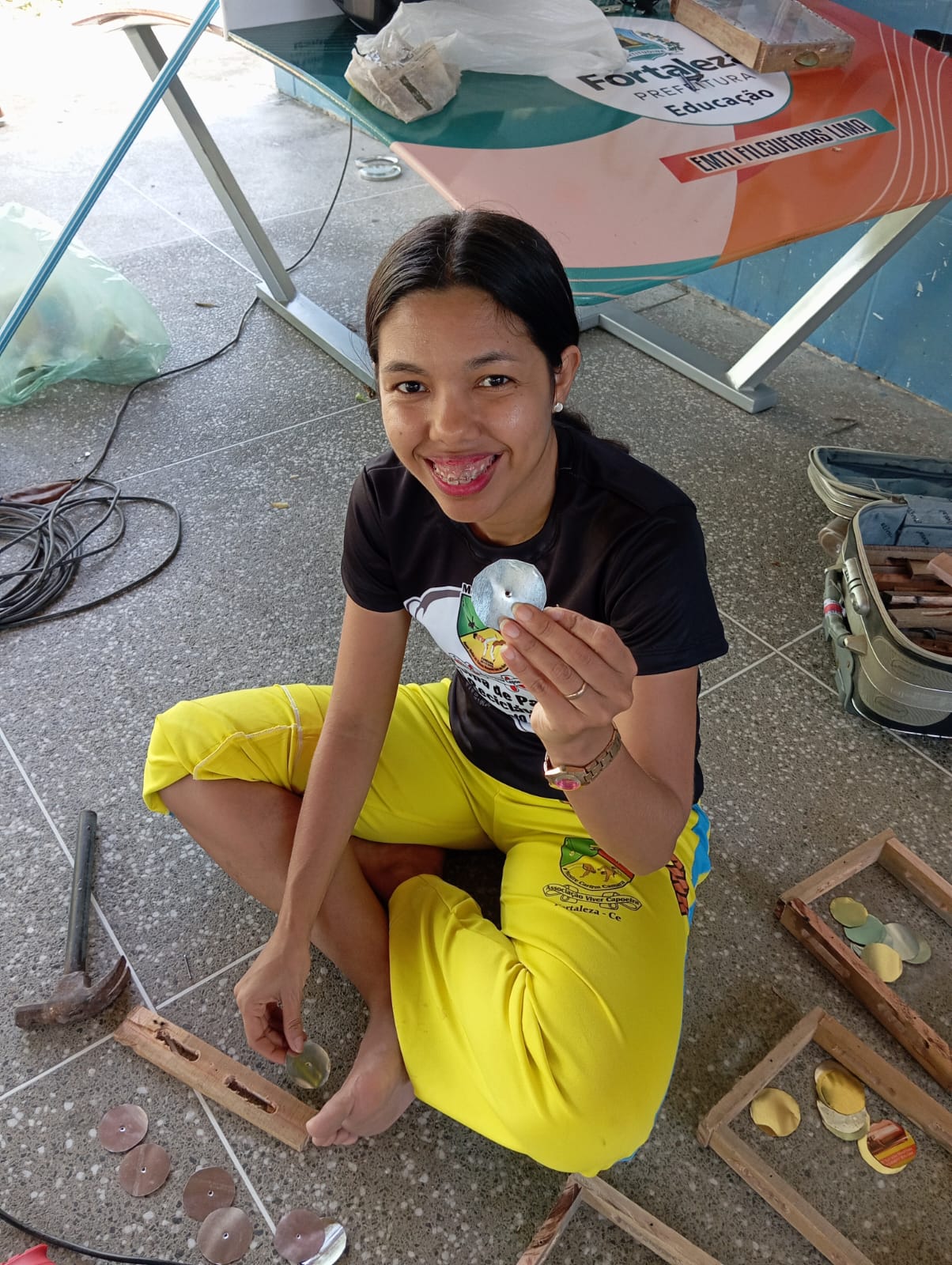 Oficina de confecção de pandeiro reciclável organização professora Halana pink e M índio Fortaleza ce
