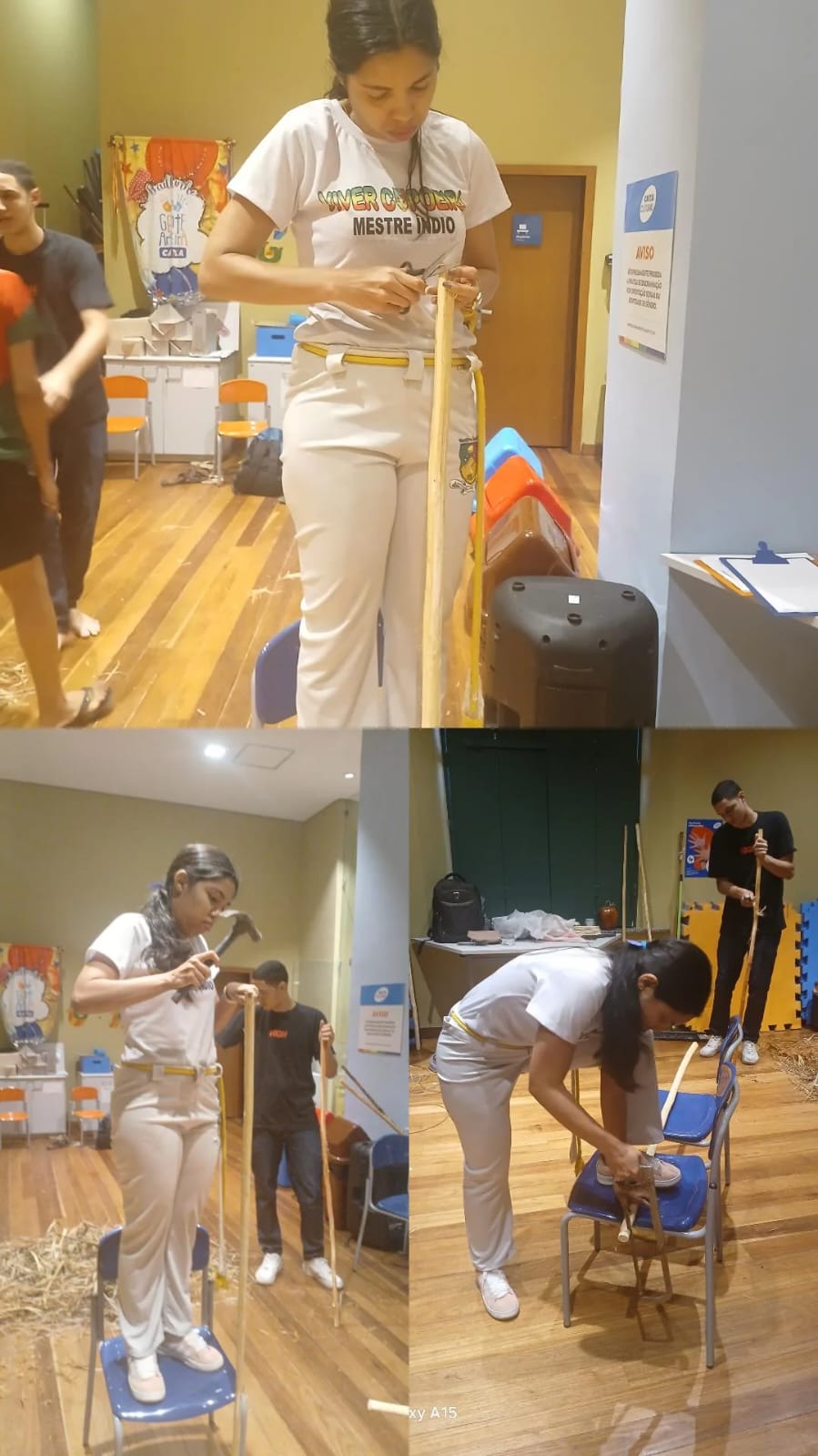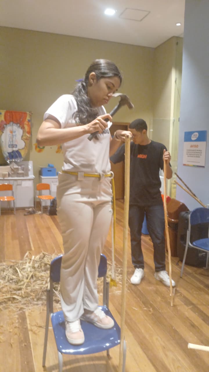 Oficina de confecção de pandeiro reciclável organização professora Halana pink e Mestre índio Fortaleza ce