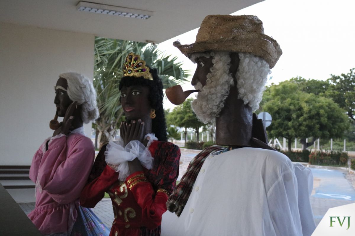 Bonecos escuros. Não fui eu quem denominou. Quem denominou foi o próprio público que achava ser o bloco um maracatu. E eu tenho trabalhado para que assim se pareça. A característica dele é ser um bloco de cultura negra.