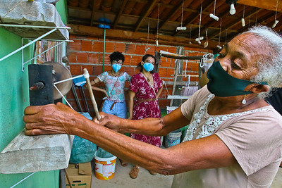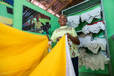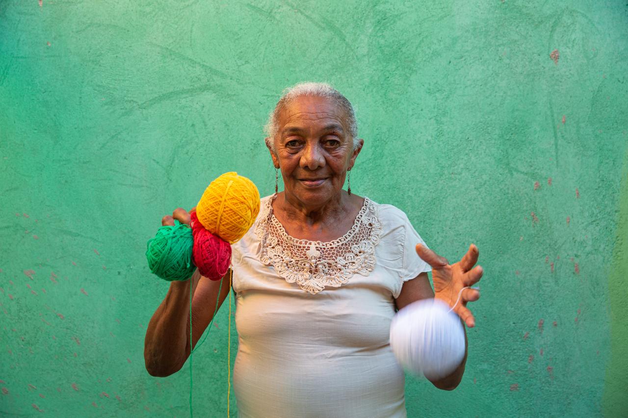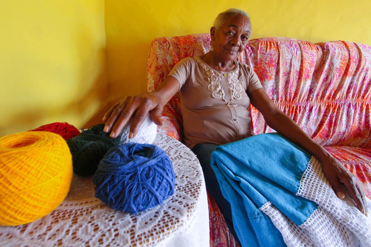 Em seu quarto, transformado em um acolhedor ateliê, Dinha exibe com orgulho suas obra. Para ela, que domina a arte da tecelagem com maestria, nenhum processo é complicado: o tempo desvendou todos os segredos e aperfeiçoou suas técnicas.