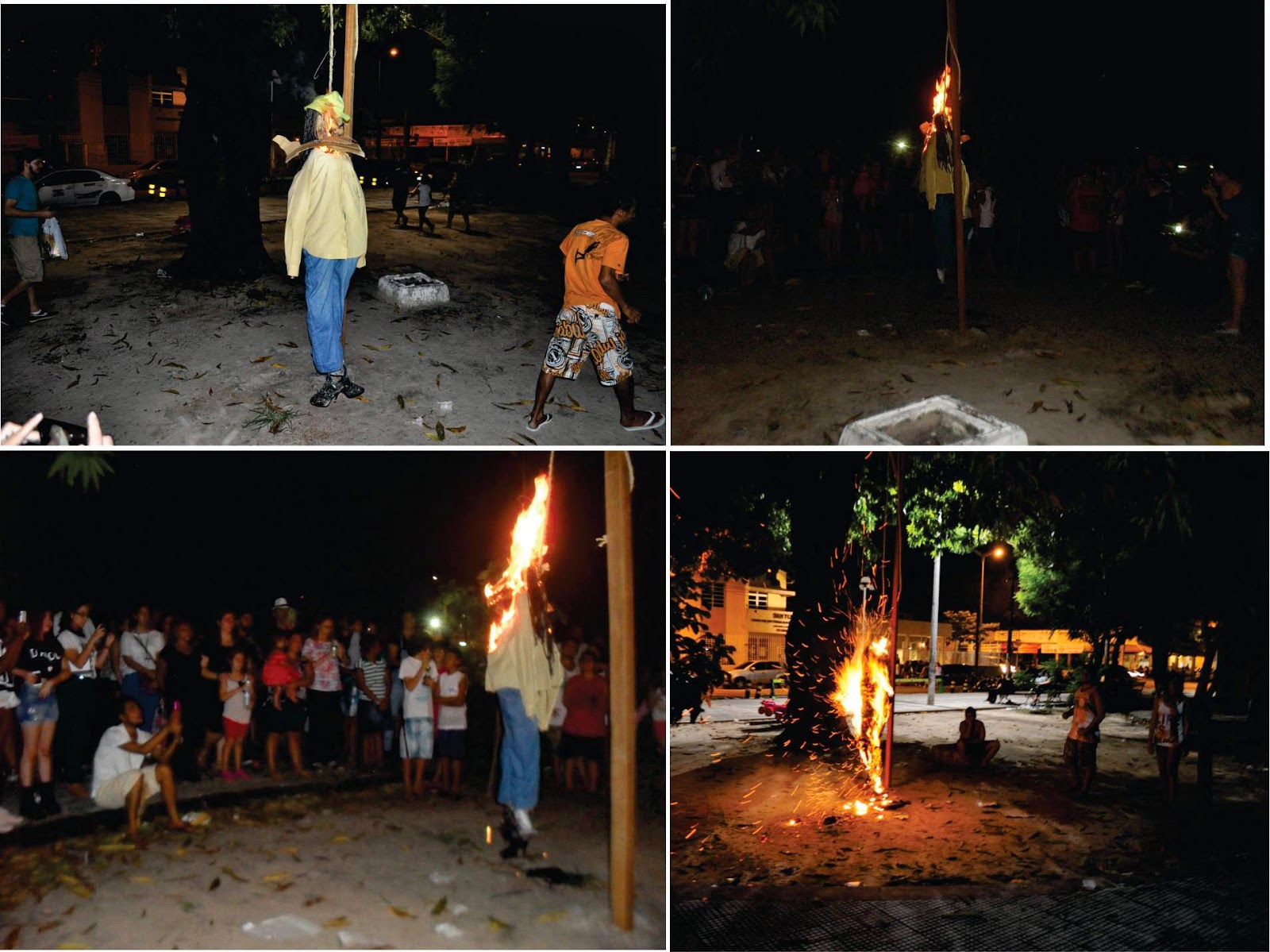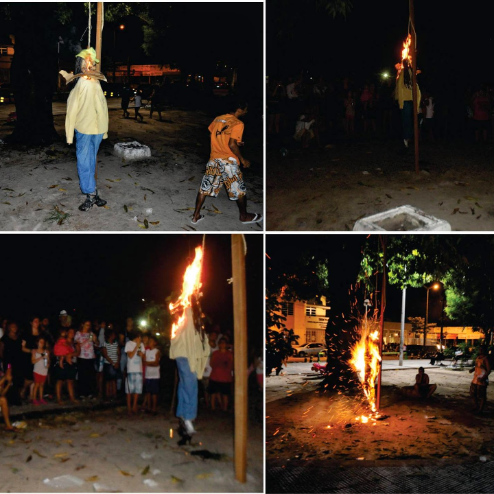 Na madrugada de domingo acontece a queima de Judas com a leitura do testamento. A brincadeira seria uma maneira de os religiosos se vingarem da traição de Judas contra Jesus. As pessoas antes de queimarem o Judas, xingam e batem bastante no boneco que que simboliza Judas