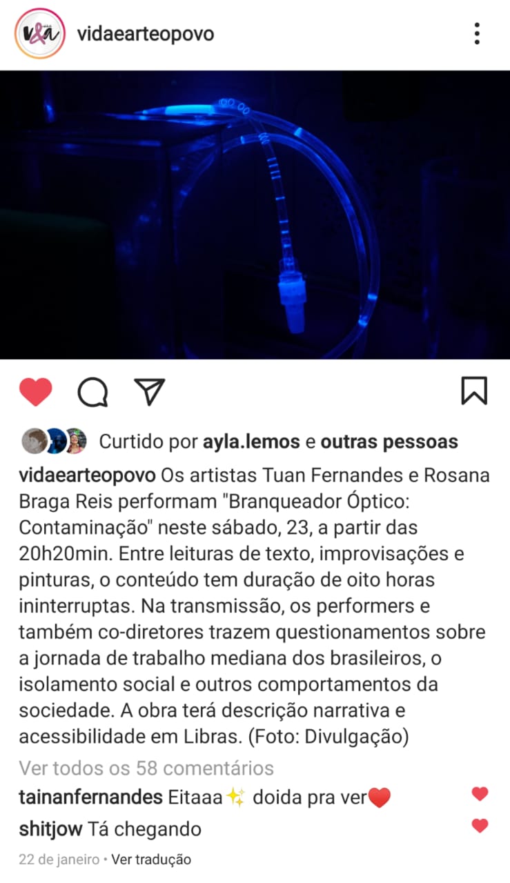 Performance "Branqueador Óptico: Contaminação"