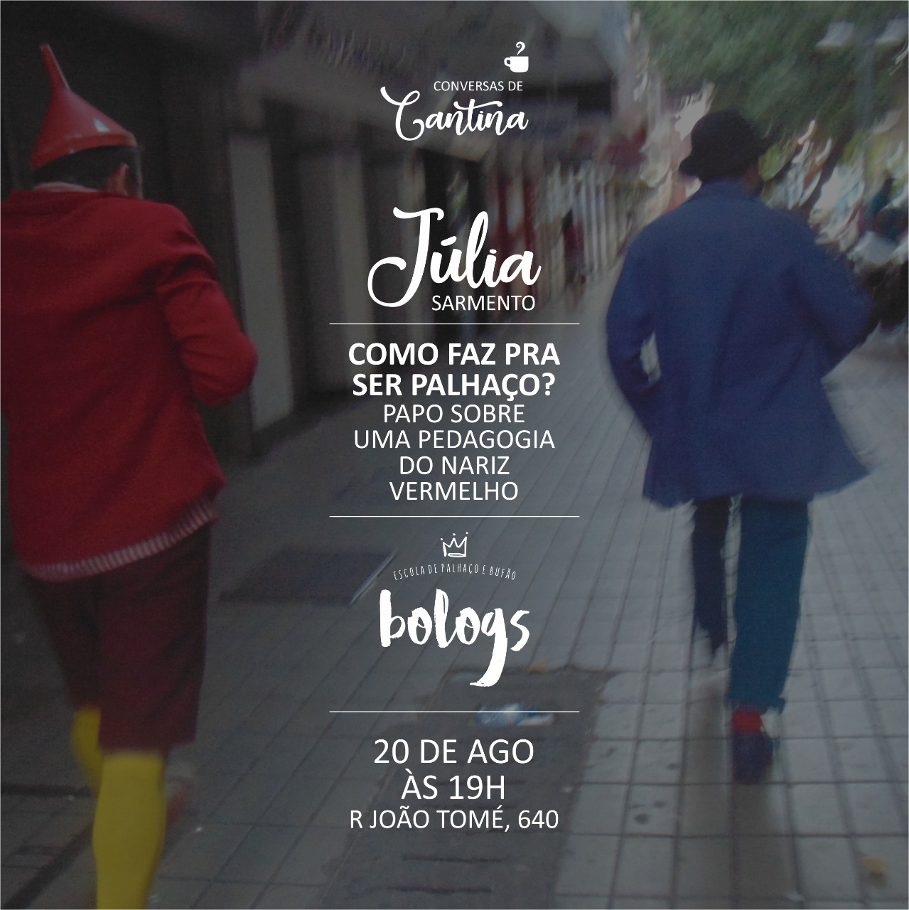 Júlia é atriz, palhaça, professora de teatro e palhaçaria e pesquisadora de Rasaboxes. Mestre em Artes pela UFC, bacharel e licenciada em Arte Cênicas pela UNIRIO. Foi palhaça em hospitais no Rio de Janeiro entre 2002 e 2009 junto ao Programa Enfermaria do Riso/UNIRIO. Desde 2010, quando se mudou para Fortaleza, vem atuando como ministrante de cursos e oficinas de palhaçaria, Rasaboxes e Improvisação Teatral. Foi professora convidada do Curso de Belas Artes da UNIFOR em 2011 e Coordenadora de Formação para as linguagens do Teatro, Dança, Circo, Música e Literatura do CUCA Barra do Ceará entre 2011 e 2013.Hoje coordena a Escola Pública de Circo do Complexo Cultural Vila das Artes onde atuava como professora e consultora pedagógica do Curso de Palhaçarias e Comicidades desde 2019.