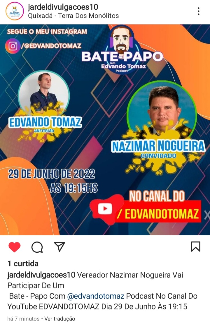 CANAL NO YOUTUBE EDVANDO TOMAZ
