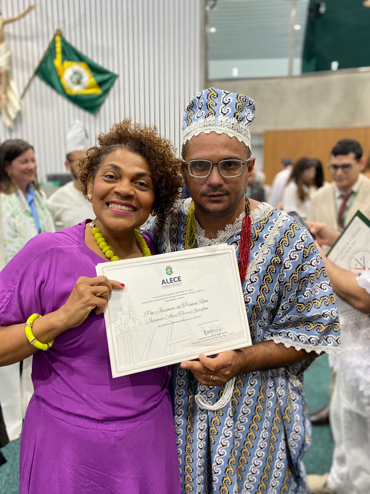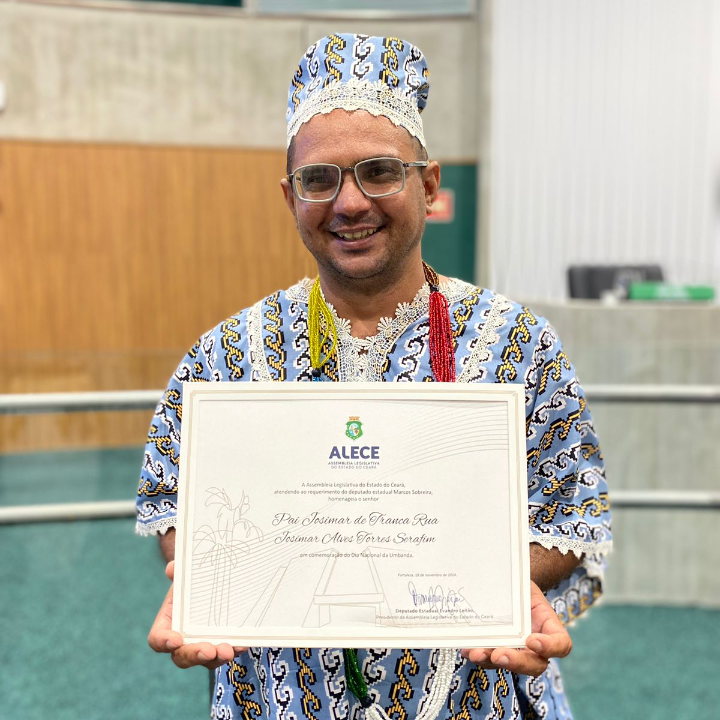 Josimar Alves Torres Serafim (Pai Josimar de Tranca Rua) é um pai de santo brasileiro nascido no dia 13 de agosto de 1984 no então distrito de Madalena, que a época de seu nascimento pertencia à Quixeramobim, Ceará, hoje município dos sertões de Canindé. Filho de Antônia Alves Torres e de Osmar Serafim dos Santos, de uma família numerosa de vinte e cinco filhos, Josimar desde cedo batalhou por melhores condições de vida. Iniciou seus estudos na escola Alfredo Machado, situada em Madalena, onde cursou da 1ª à 4ª série do ensino fundamental. Em Russa, Ceará, concluiu os anos finais do ensino fundamental e cursou o Prolongado Formação de Militantes, no Assentamento Bernardo Marinho. Anos mais tarde concluiu o ensino médio na escola do campo do assentamento Marizeira, no município de Itatira, Ceará. Foi membro do Movimento dos Trabalhadores Sem Terra, MST no período de 2004 a 2012, tendo sido, inclusive, dirigente estadual do movimento. Em paralelo ao ensino médio, teve a oportunidade de concluir, o curso de Formação de Educadores de Assentamentos Rurais em Áreas de Reforma Agrária (Magistério da Terra), ofertado pelo MST em parceria com o Instituto Nacional de Colonização e Reforma Agrária, INCRA, e Universidade Estadual do Ceará, UECE, e chancelado pela Secretária de Educação Básica do Estado do Ceará, Seduc. É casado com Aíla Maria de Sousa (Mãe Aíla de Maria Padilha), com ela tem um filho biológico, Joaquim Hermes de Sousa Torres, Lara Emanoela Torres de Andrade, de outro relacionamento, além destes tem ainda Beatriz Souza e José Ilo Neto, enteados e Emanuel Gustavo, filho adotivo. Ambos têm a missão de cuidar de cinquenta e um filhos de Santo e da manutenção da Tenda Ogum General de Brigada, Tranca Rua. Entrou na Umbanda há 14 anos, motivado por questões de saúde na família e por necessidade pessoais. Sua primeira Mãe de Santo foi Madrinha Maria (mãe Maria Conga) e Nelson Ferreira de Iemanjá (Pai Nanã) através deles recebeu as sete linhas da Umbanda. Na Quimbanda, teve como sacerdote, Pai Adson de Ayrá, de seus mestres, recebeu muito apoio e ensinamentos. Em 2016 recebeu as sete linhas da Umbanda na casa do Caboclo Vira-Mundo de Yemanjá, tornando-se sacerdote. Neste mesmo ano, recebeu a missão do Exú, Seu Tranca Rua, de estabelecer um terreiro em sua homenagem no município de Madalena, Ceará, denominado Tenda, Ogum General de Brigada, Tranca Rua. Pai Josimar, também é membro do Conselho Municipal do Meio Ambiente, fundador e atual presidente da Associação Beneficente Cultural Religiosa Afro-brasileira do Ceará, ABECRA, membro do Comitê Gestor das Expressões Afro-brasileiras do Estado do Ceará, e um dos idealizadores das cozinhas solidárias do programa Ceará Sem Fome, do governo do Estado. Além disso, é agricultor familiar e possui pequenos rebanhos ovinos e caprinos e aves domésticas, usa seus conhecimentos com medicina popular, e realiza a feitura de remédios e lambedores, a partir de plantas medicinais. É notório, que Pai Josimar possui um olhar para além da espiritualidade, Pai Josimar já recebeu homenagens pelos relevantes serviços prestados à religião e à população em geral, como a Moção de Aplausos, por meio da qual ambos foram agraciados na câmara municipal de Fortaleza, pelo incentivo e a realização da festa anual de Iemanjá, e de seu amor pela Umbanda,, buscando sempre melhorias para a sua comunidade e para o povo madalenense