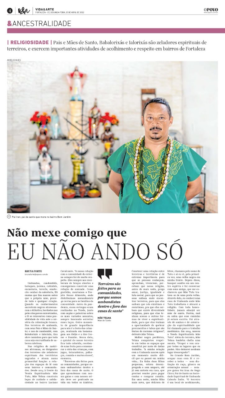 Com humildade, escuta e firmeza, Pai Iran segue firme na missão de preservar e multiplicar os saberes da Umbanda, cuidando de sua comunidade, acolhendo com amor e ensinando com o exemplo.