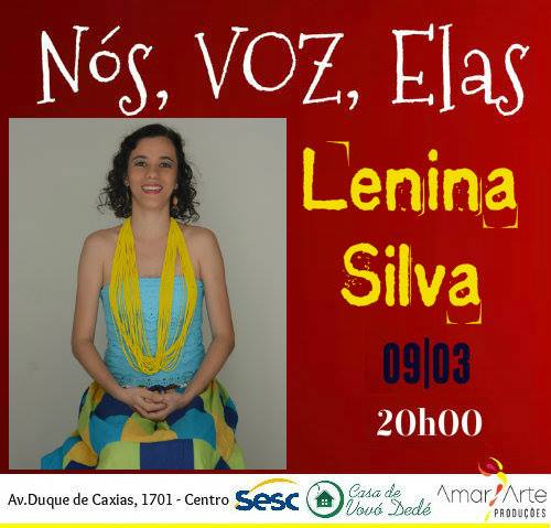Lenina Silva é paraense radicada no Ceará há 20 anos. Especialista em Musicoterapia pelo Instituto Graduale/FACPED e em Psicopedagogia pela Faculdade Vale do Jaguaribe (FVJ). Graduada em Licenciatura em Música pela Universidade Estadual do Ceará (UECE). Desenvolve trabalhos e pesquisas na área musical que percorrem: a Composição e execução de arranjos e trilhas sonoras para performances cênicas; Contação de Histórias; Cultura popular; Dança; Educação Musical Ativa; Música Orgânica; Musicoterapia; Percussão e Psicopedagogia Musical.