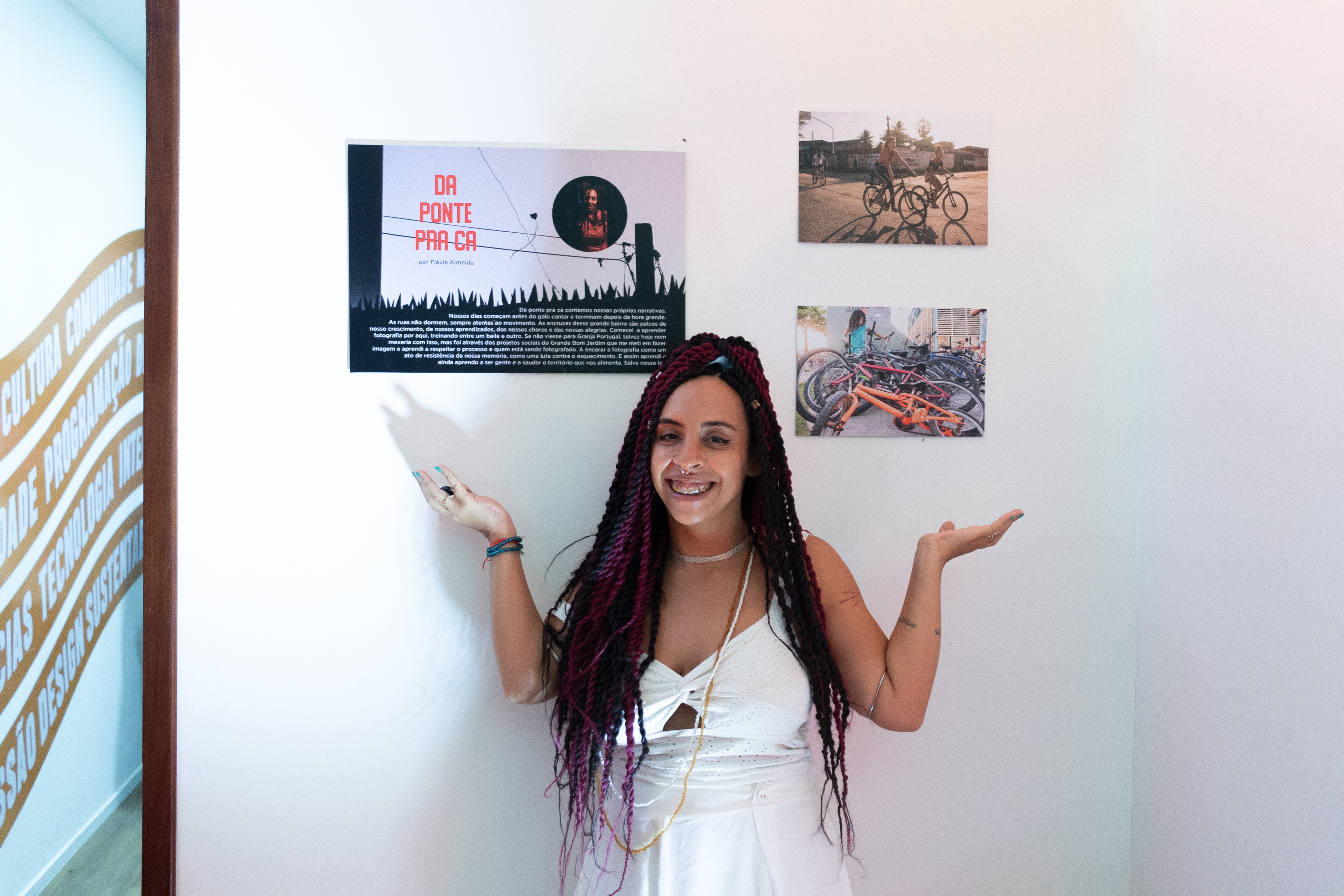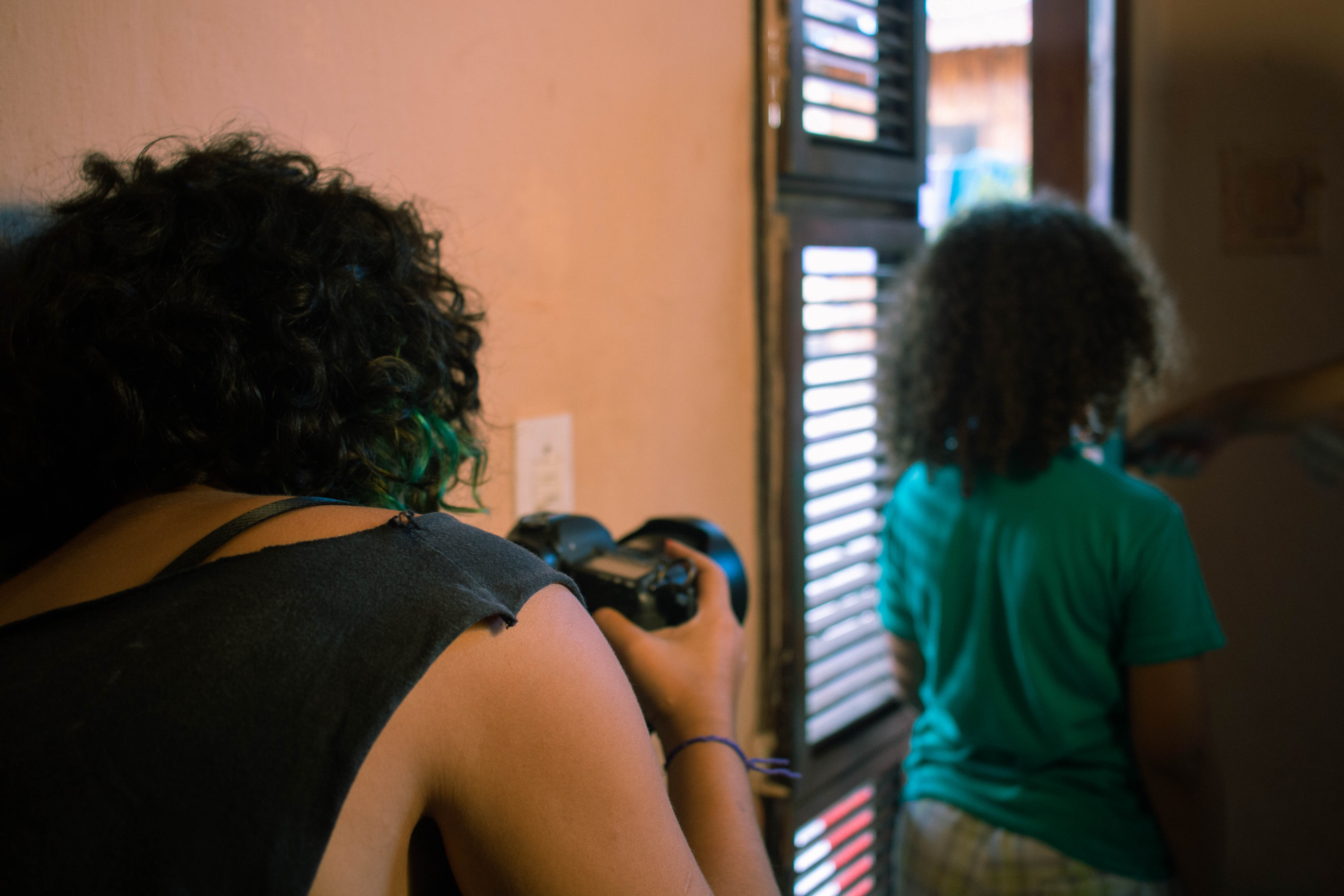 Artista visual periférica, do Grande Bom Jardim. Movida pelo fazer artístico do cinema, atuo principalmente nas áreas relativas à fotografia, roteiro e produção. Acumulo dez anos de experiência profissional e estudo. Nas artes visuais, experimento fotografia analógica e vídeo-performances, assim como a materialização de imagens em gravuras artesanais sobre tecido, mesclando os fazeres digitais e manuais. Também sou pesquisadora e arte-educadora, licenciada em Ciências Sociais (UECE), Técnica em Audiovisual (UFC/Vila das Artes) e Produção Cultural (ECULT). Estudo a relação da imagem com território, gênero, relações étnico-raciais e estéticas makumbeiras.