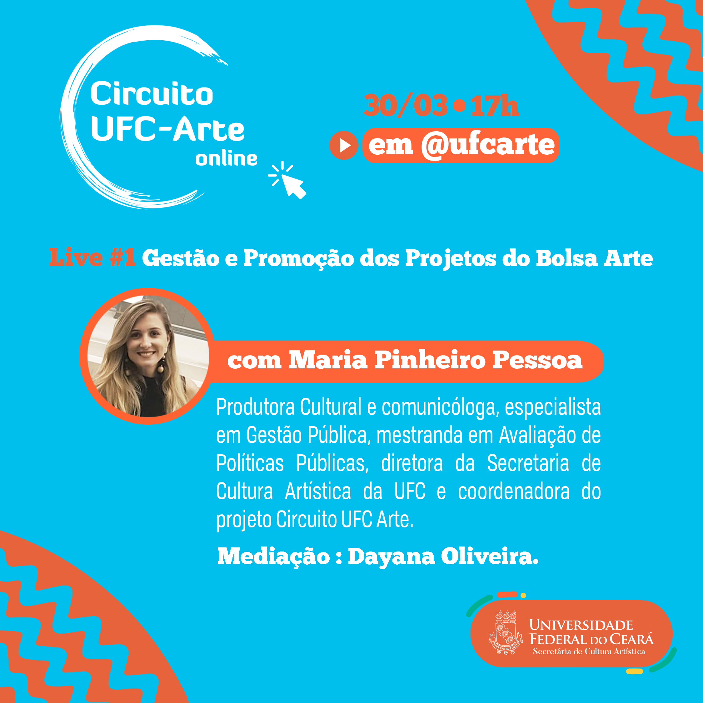 Em 2017, tem seus primeiros contatos com as produções do Circuito UFC Arte da Secult UFC e expande, com a produção e veiculação de vídeos no Youtube da Secult UFC, otimização do site da Secretaria e criação do perfil do Instagram, a atuação no meio online. No ano seguinte, inaugura os editoriais da Secult UFC após as orientações e aprovação do prof. Chico Neto.