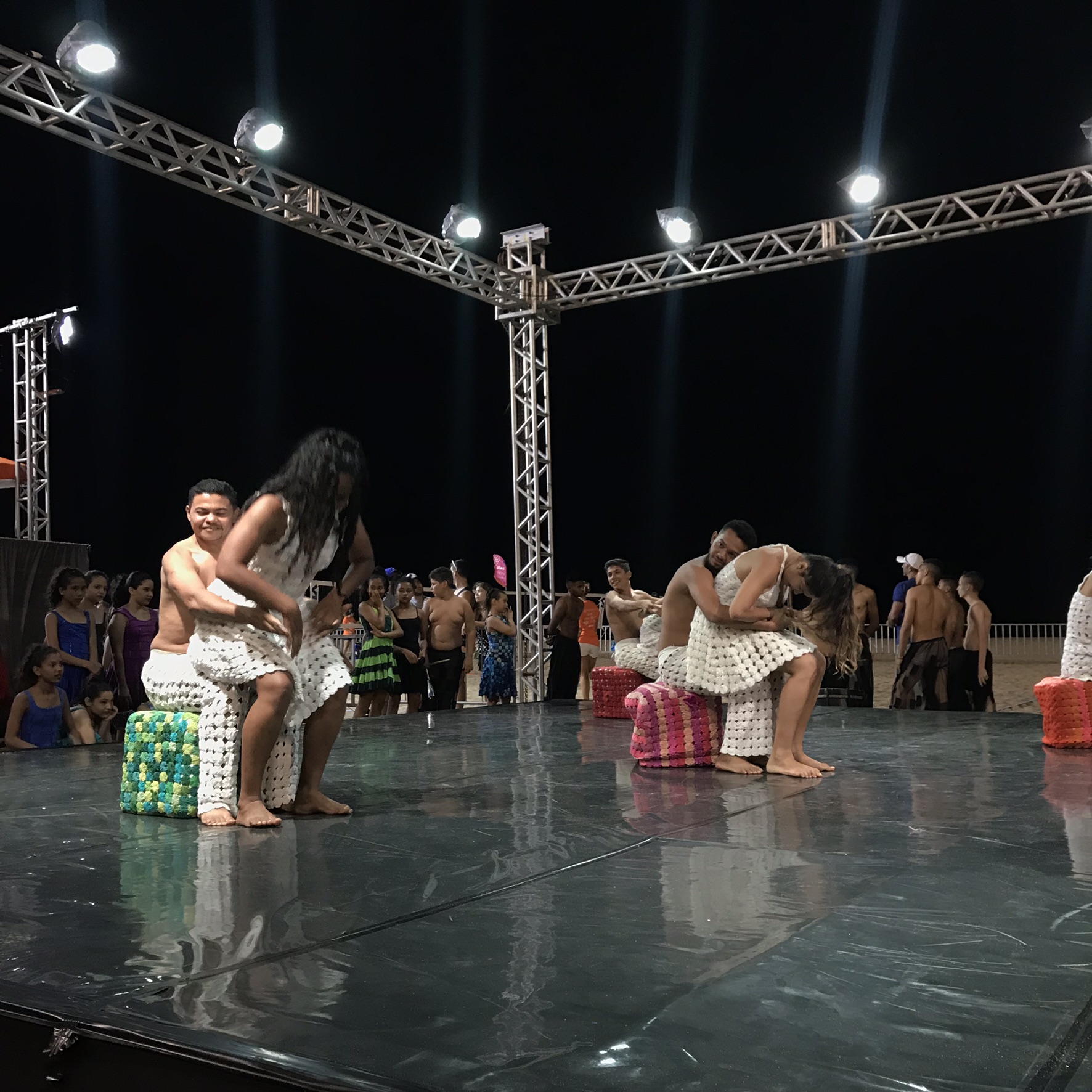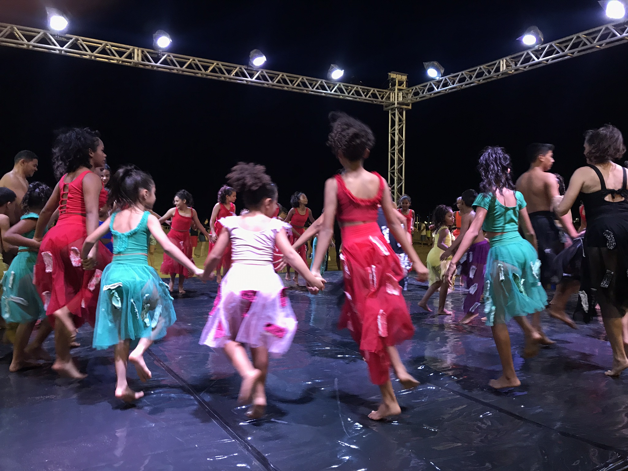 O “Contos e Corpos Andarilhos” foi apresentado no sábado (17) e retrata as narrativas das crianças e jovens da comunidade do bairro Vila Velha, seus mundos e cotidianos. O “Terreiros de Sol e Lua” acontece no domingo (18) e é uma releitura do Coco de Roda e a Mulher Rendeira que descreve a simplicidade e os encantos das danças típicas do sertão nordestino. Crianças, mulheres e homens sertanejos, com seus costumes e tradições.