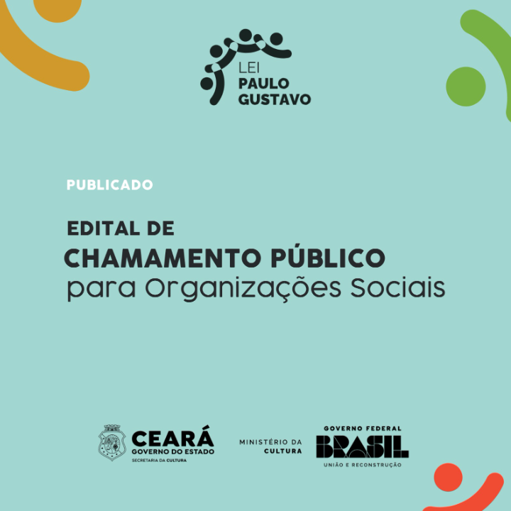 A SECRETARIA DA CULTURA DO ESTADO DO CEARÁ - SECULT CE torna público o presente Edital de Chamamento Público para SELEÇÃO DE INSTITUIÇÃO SEM FINS LUCRATIVOS, qualificada pelo Estado do Ceará como ORGANIZAÇÃO SOCIAL, com atuação na área cultural, visando a celebração de Contrato de Gestão para realização do Programa de Formação, Suporte, Assessoria, Acompanhamento, Monitoramento e Operacionalização das Estratégias de Fomento do Campo Cultural do Ceará, com vistas à aplicação de recursos federais oriundos da Lei Complementar nº 195/2022 - Lei Paulo Gustavo, regulamentada pelo Decreto Federal nº 11.525, de 11 de maio de 2023, com fundamento na Lei Estadual nº 12.781, de 30 de dezembro de 1997 e suas alterações.
