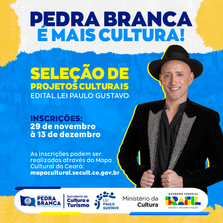 EDITAL DE CHAMAMENTO PÚBLICO Nº 006/2023- EDITAL PARA AS DEMAIS ÁREAS CULTURAIS - SELEÇÃO DE PROJETOS PARA FIRMAR TERMO DE EXECUÇÃO CULTURAL COM RECURSOS DA LEI COMPLEMENTAR 195/2022 (LEI PAULO GUSTAVO) PEDRA BRANCA – CE