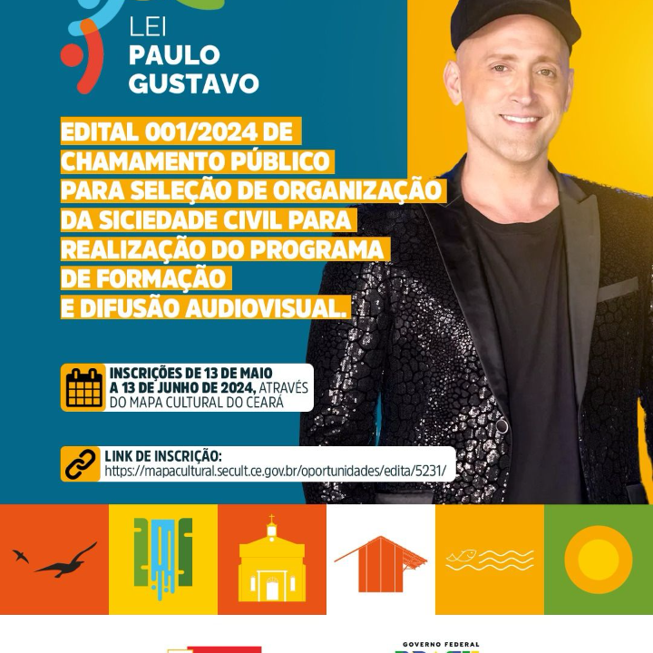 EDITAL 001/2024 DE CHAMAMENTO PÚBLICO PARA SELEÇÃO DE ORGANIZAÇÃO DA SOCIEDADE CIVIL PARA REALIZAÇÃO DO PROGRAMA DE FORMAÇÃO E DIFUSÃO AUDIOVISUAL - LEI PAULO GUSTAVO – PIRES FERREIRA/CE