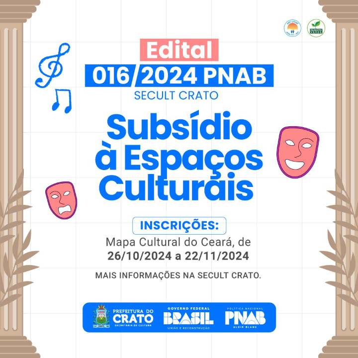 EDITAL DE CHAMAMENTO PÚBLICO 016/2024 PNAB SECULT CRATO [SUBSÍDIO À ESPAÇOS CULTURAIS]