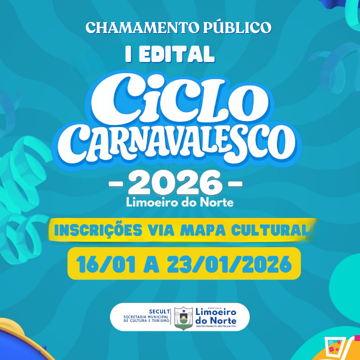 A Prefeitura Municipal de Limoeiro do Norte-CE, por meio da Secretaria de Cultura e Turismo (SECULT), torna público o presente Edital de Chamamento Público para seleção de Grupos e Manifestações Carnavalescas do município. Este edital visa o apoio, a preservação e o fomento às tradições culturais do Ciclo Carnavalesco 2026.