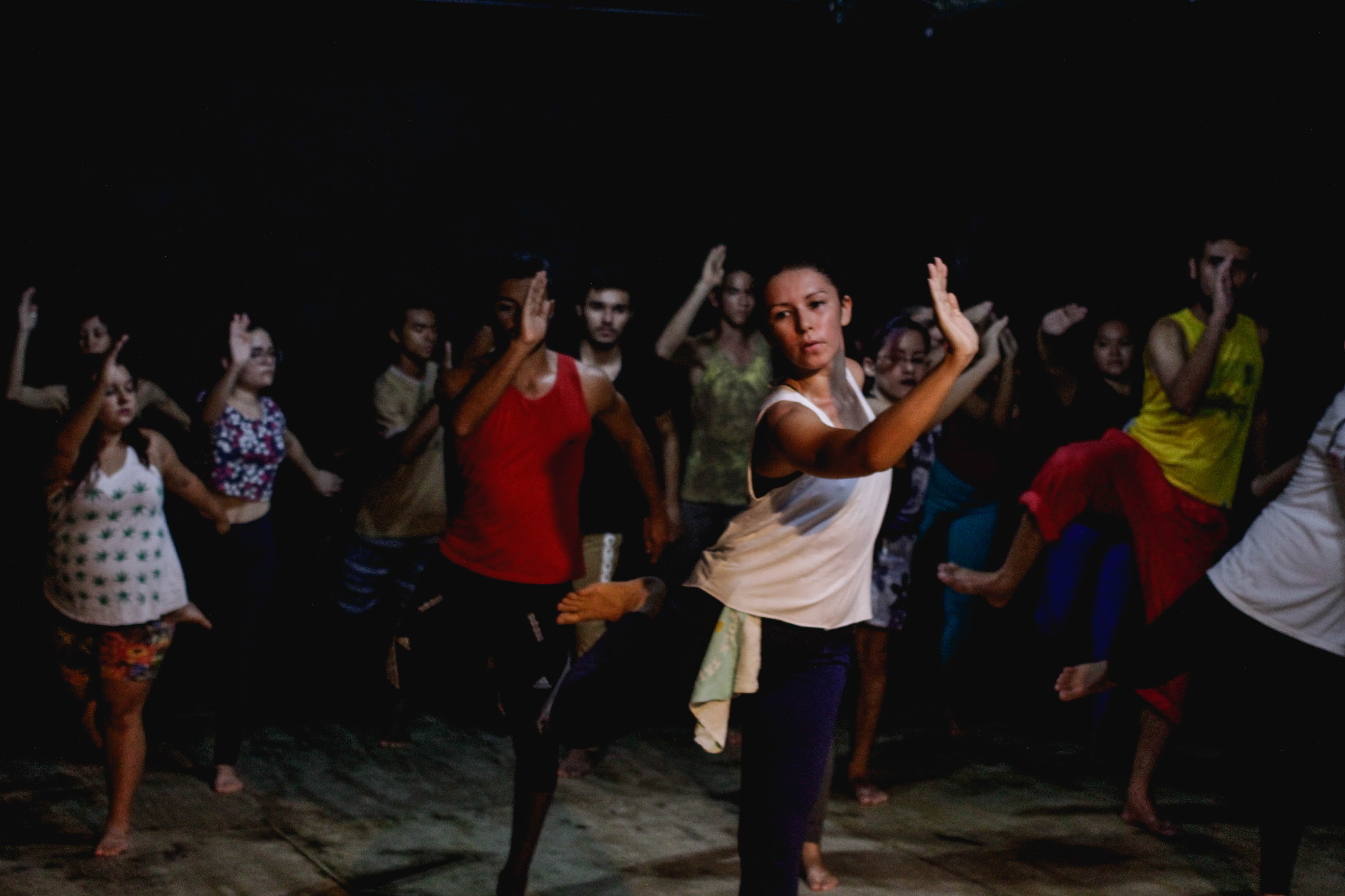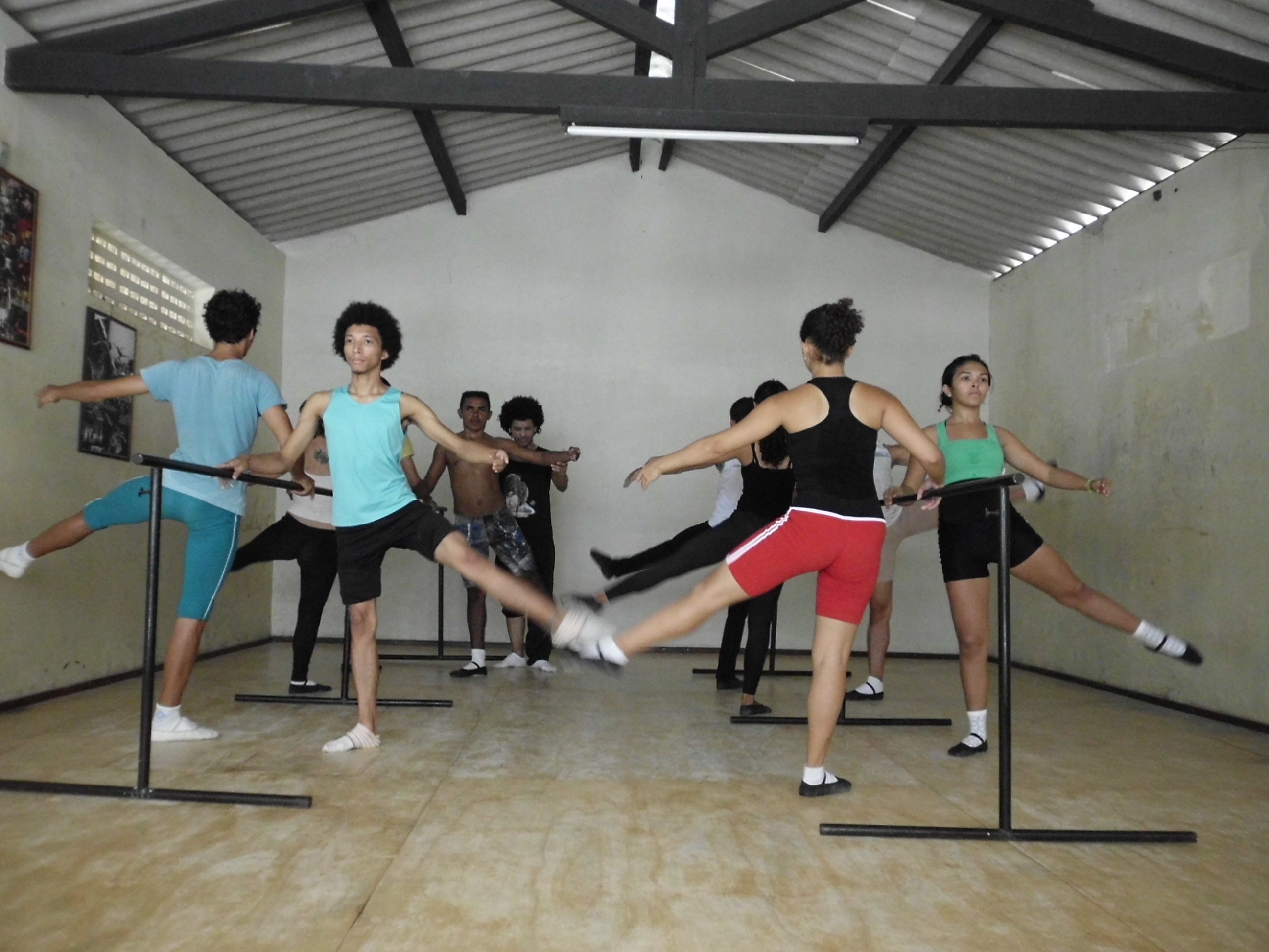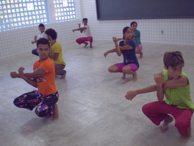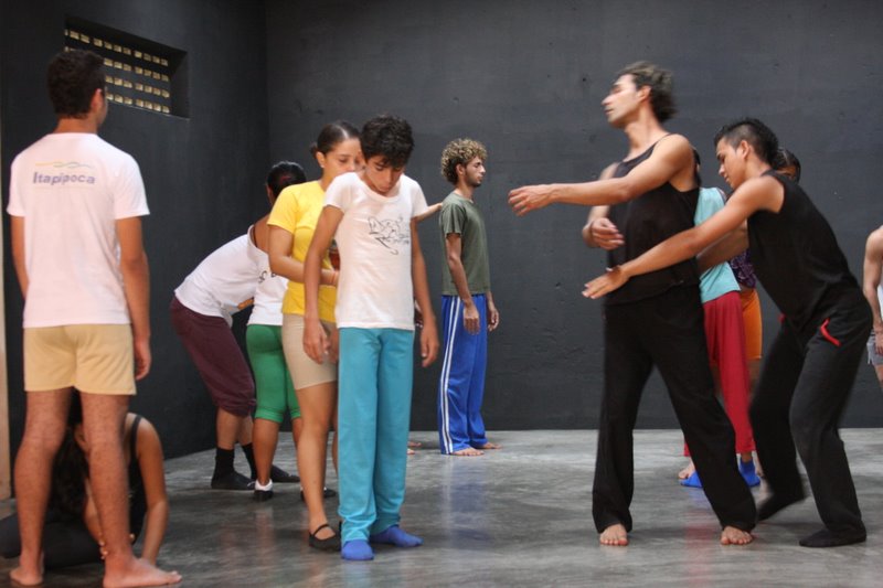 Desde 2005 a Cia Balé Baião vem construindo coletivamente uma experiência de escola livre de dança chamada oficialmente de “Escola livre Balé Baião”, nos espaços de sua sede, o Ponto de Cultura Galpão da Cena, contemplando jovens e adultos residentes em 07 bairros periféricos da cidade de Itapipoca, litoral oeste do Ceará. Os bairros são: Violete, Cruzeiro, Maranhão, Ladeira, Fazendinha, Picos e Coqueiro. Ao longo dos 13 anos de atuação da Escola livre Balé Baião edificou-se gradativamente estratégias metodológicas de ensino-aprendizagem que acolhem os saberes dançantes trazidos por cada corpo, no intuito de valorar e potencializar as singularidades expressivas e autonomias do dançarino, por meio de exercícios de preparação corporal para a dança cênica desenvolvidos pelos professores da Cia Balé Baião ao longo de duas décadas, tendo como bases técnicas e transdisciplinares: a dança afro-indígena brasileira, a dança moderna (Martha Graham), os princípios de Laban para análise de movimento corporal, o contato-improvisação, as danças urbanas, o teatro físico, a performance arte, as artes audiovisuais (fotografia e videodança) e a música (percussão afro brasileira).Como teóricos da dança e da educação que fundamentam o pensar-fazer da Escola livre Balé Baião, adota-se Paulo Freire que propõe uma pedagogia da autonomia (1996), inserida nos diversos contextos sociais visando estabelecer processos dialógicos que contribuam com o desenvolvimento de cidadãos críticos, propositivos e sujeitos de suas próprias histórias. Rubem Alves que sugere uma educação pela alegria de ensinar (1994), pelos afetos, pelo prazer e liberdade de escolhas, visando à experiência, o tátil, o saborear a vida, a descoberta gradativa dos saberes como elementos metodológicos a serem abraçados pelos educadores. Rolando Toro que nos apresenta a dança como vivencia da integração (2005) entre humanos, natureza e cosmos, como via de fortalecimento dos vínculos, cura, celebração, reafirmação de compromissos em defesa da vida e possibilidade de reconexão espiritual. Isabel Marques e a dança-educação na Linguagem da dança (2010), pensando no corpo como território e/ou contexto gerador de relações, sentidos, conhecimentos, e consequentemente gerador de danças singularizadas e coletivizadas, danças que dialoguem, interajam, interfiram e transformem realidades. Sandra Petit e o referencial teórico-metodológico chamado Pretagogia (2015), que vislumbra contribuir com a implementação da Lei 10.639/03 tendo o pertencimento negro, o corpo-dança afroancestral e a tradição oral africana como principais vias de formação e empoderamento das professoras e professores. Ruth Cavalcante e Cezar Wagner e a Educação Biocêntrica (2015) assumindo processos de ensino-aprendizagem, desenvolvimento onde a vida seja promulgada, potencializada e defendida enquanto bem maior, tendo na vivência dos vínculos afetivos o reencontro e reconexão com nossas ancestralidades cósmicas.