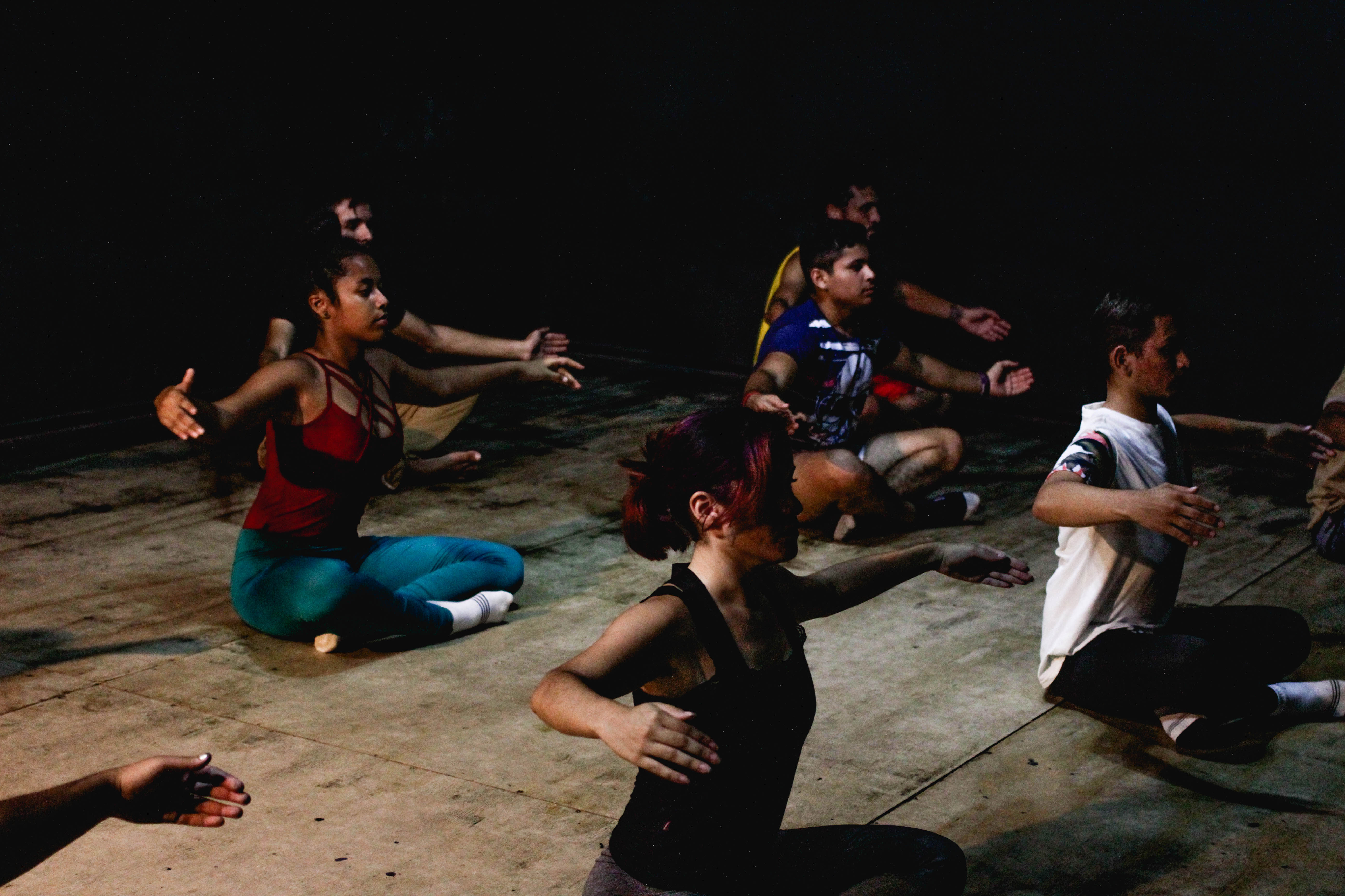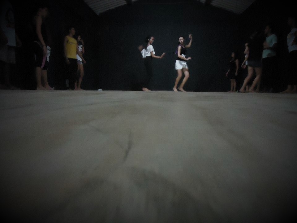 O tablado do Galpão da Cena, espaço onde acontecem as aulas de dança da escola livre, comporta 30 pessoas.