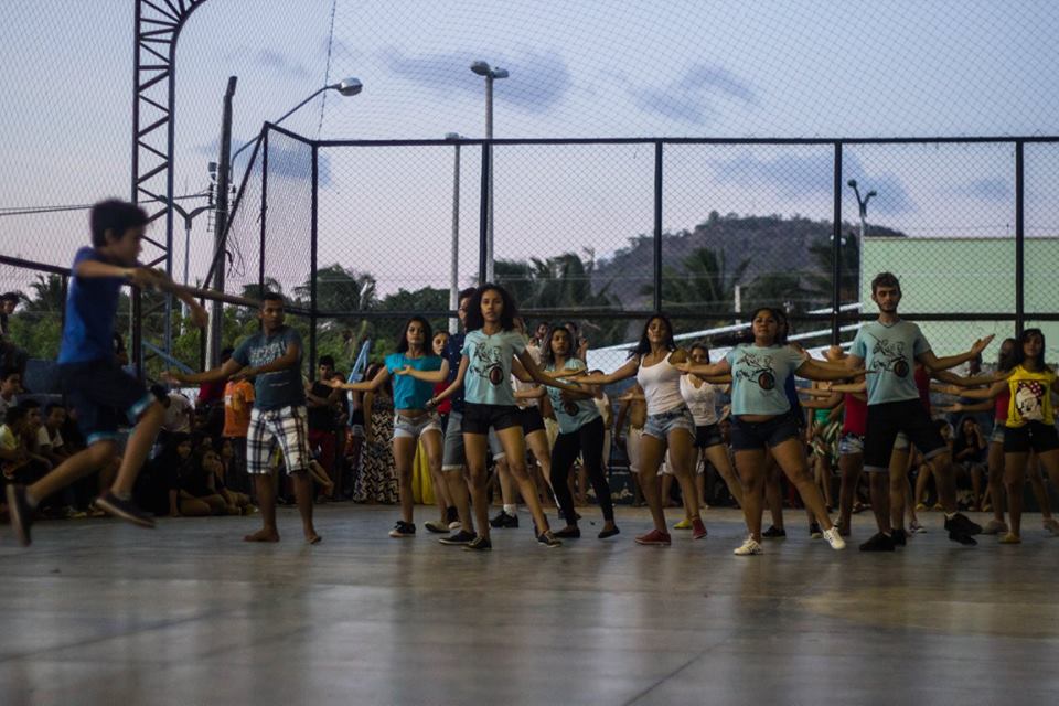 Desde sua fundação em 1994, a Cia Balé Baião estabelece conexões e diálogos com a juventude que dança na periferia e com lideranças comunitárias atuantes no interior. O primeiro elenco do Balé Baião já era composto por jovens dançarinos de bairros periféricos da cidade, que a convite do educador, coreógrafo e dançarino Gerson Moreno, consolidaram o grupo pioneiro na região, a princípio chamado “Dance Rua”, depois chamou-se “Balé Baião”. Por meio de parcerias com entidades, pastorais sociais e associações populares de Itapipoca, tais como o SINDSEP (Sindicato dos Servidores Públicos), CEBs (Comunidades Eclesiais de Base) e CETRA (Centro de Estudos do Trabalho e de Assessoria ao Trabalhador), tornou-se possível conhecer de perto, interagir e estabelecer conexões com grupos culturais formados pela juventude agrária e quilombola através de encontros e oficinas realizadas com a contribuição da Cia Balé Baião. Desde então o Galpão da Cena e sua escola livre de dança vem acolhendo jovens e adultos desses territórios em suas aulas, como também em projetos de formação de plateia e festivais. Essa fusão: Periferia e Interior, possibilita aprendizados múltiplos para além da dança, sobretudo a compartilha de saberes pautados no convívio comunitário, na diversidade cultural e direitos humanos. Descobre-se com essa integração geográfica que existem territórios comuns entre a juventude agrária e urbana, sobretudo o anseio pela dança, o desejo de construir conhecimento em coletividade, o reconhecimento e a afirmação das identidades afro-indígenas, a necessidade de edificar projetos de vida numa perspectiva profissional, afetiva e social.