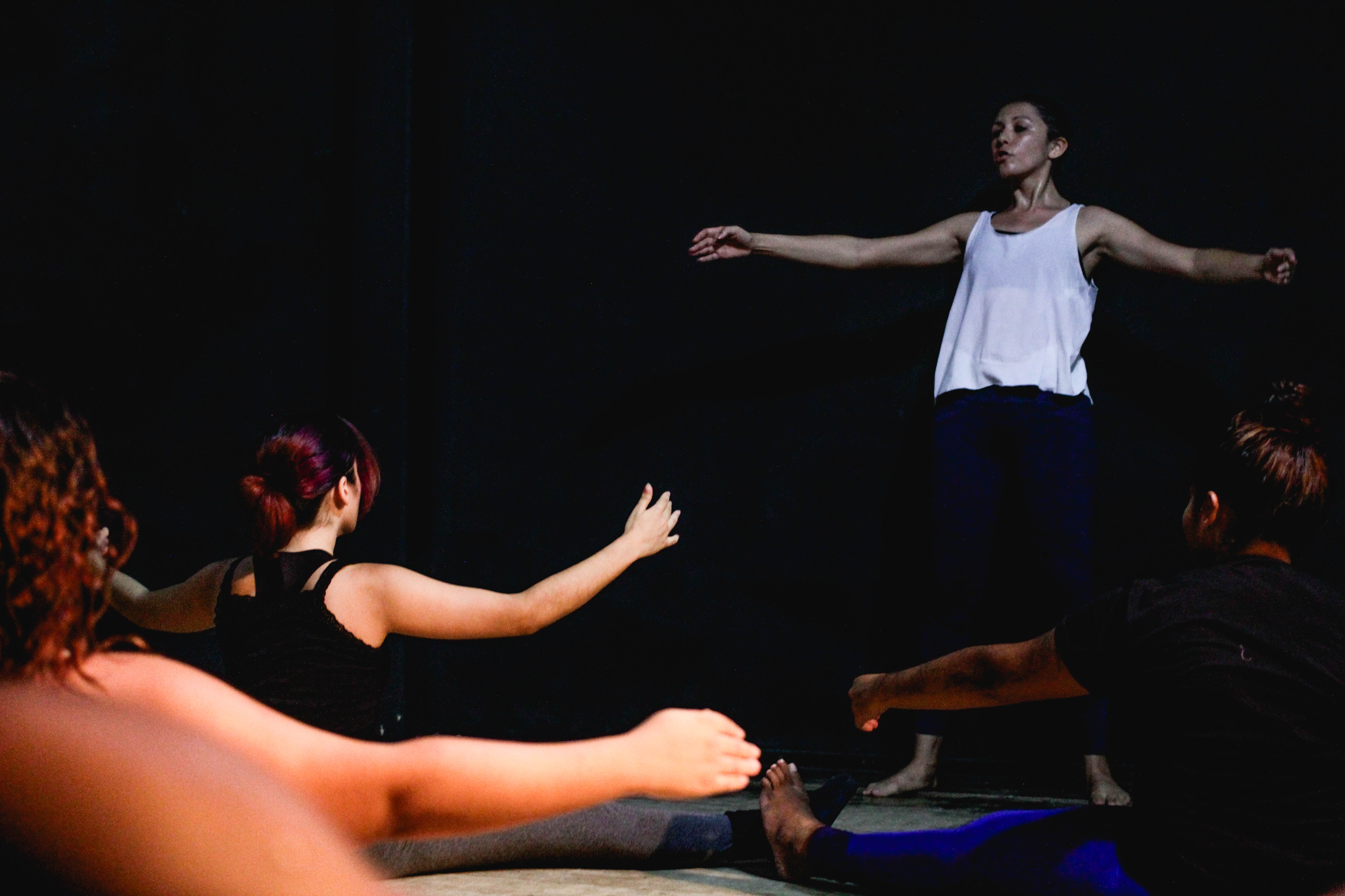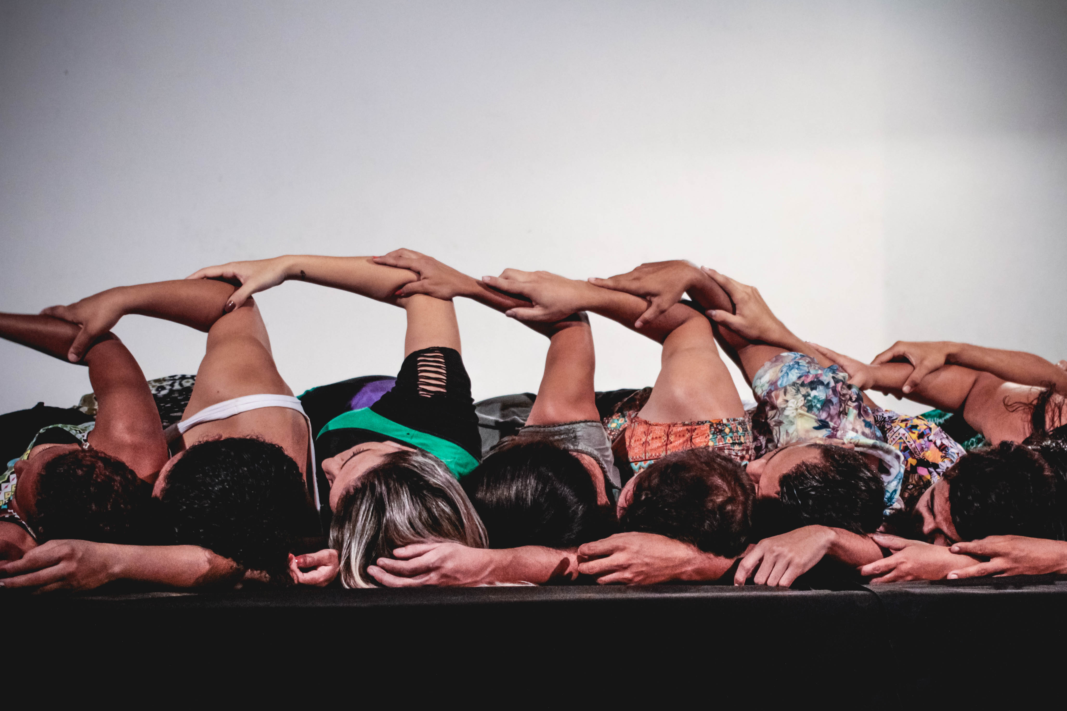 5. Exploração de criações individuais e coletivas nos diferentes níveis do corpo: plano baixo, mediano e alto, diversificando qualidades de movimento (peso, fluxo, tempo) em relação continua e dinâmica com o espaço.